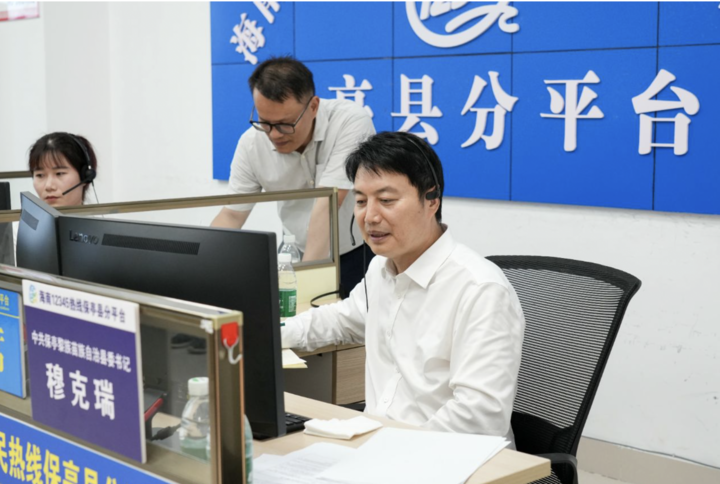 图为保亭县委书记穆克瑞在海南12345热线保亭县分平台接听群众来电。(海南省12345政务服务便民热线供图)