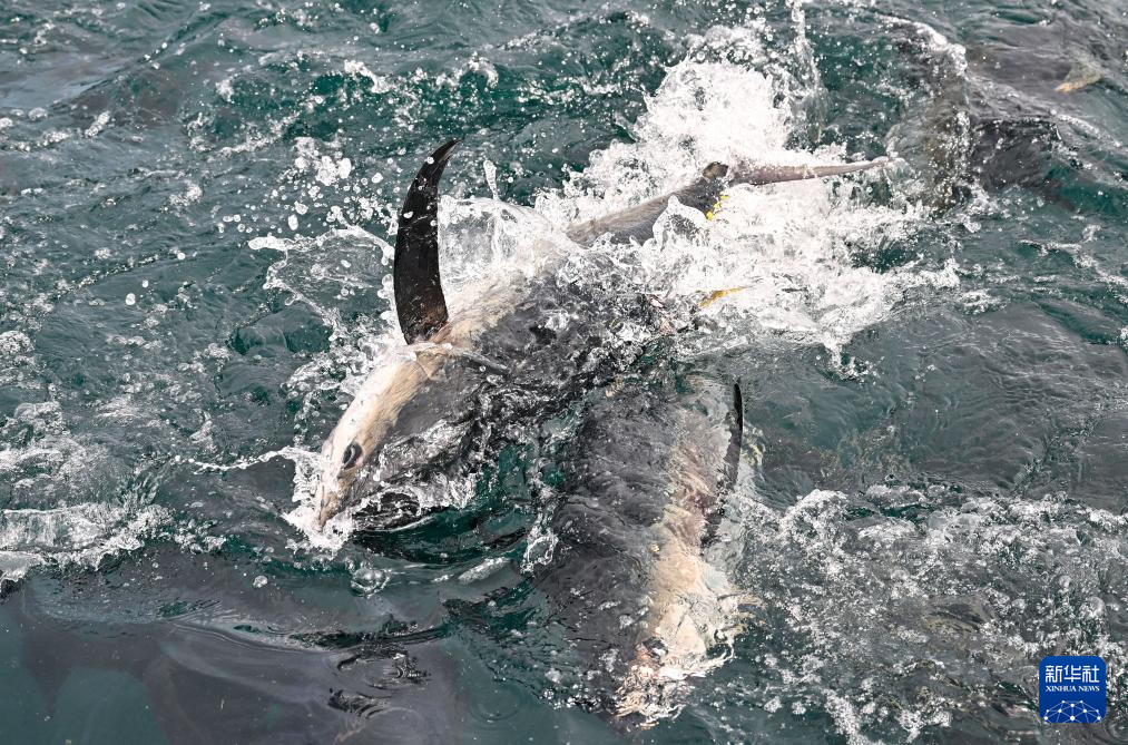 9月17日,中国水产科学研究院南海水产研究所科研人员在进行黄鳍金枪鱼养殖技术科学研究。新华社记者 郭程 摄