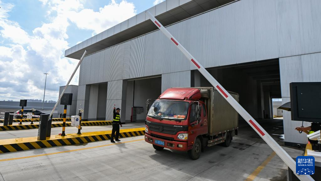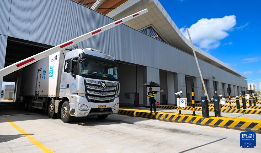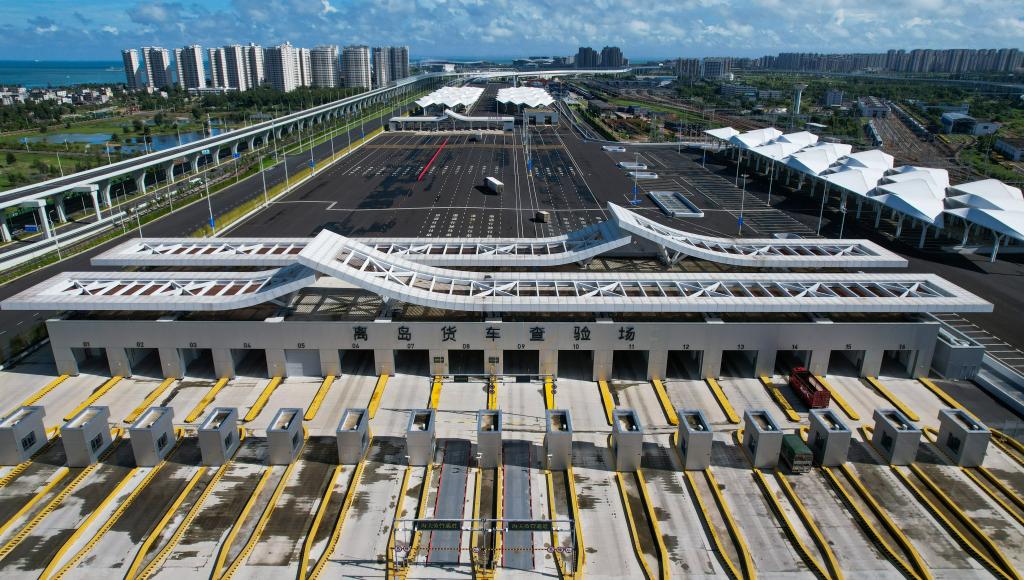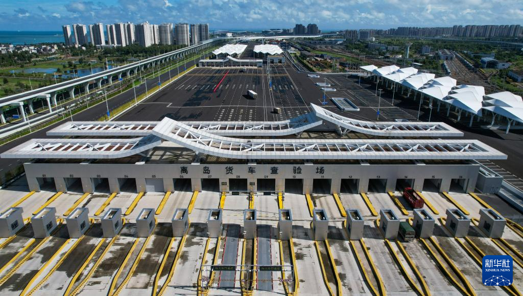 9月17日,离岛货车通过海口新海港和南港“二线口岸”(货运)集中查验场,开往港区。新华社记者 杨冠宇 摄