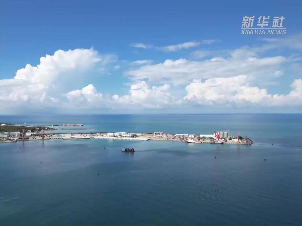9月17日,离岛货车通过海口新海港和南港“二线口岸”(货运)集中查验场,开往港区(无人机照片)。新华社记者 杨冠宇 摄