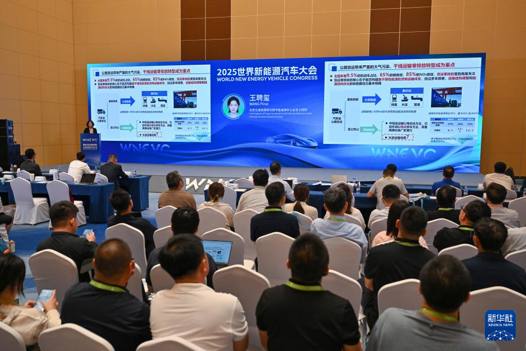 9月27日拍摄的2025世界新能源汽车大会“货车零排放及基础设施协同发展论坛”现场。新华社记者 郭程 摄