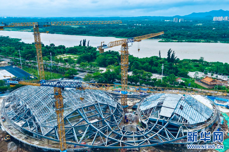 新华网海口10月1日电(记者杨冠宇)中秋国庆“双节”期间,中建一局琼海市文化体育中心二期项目施工现场一片忙碌景象,塔吊机械轰鸣运转,施工人员坚守一线,紧张而有序地进行作业。抢进度、保质量,中建一局全体参建人员主动放弃休假,坚守现场,以“不停工、不断档”的奋斗姿态和项目建设的“加速度”向祖国献礼。