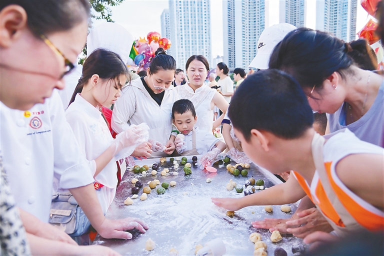 10月1日,2025海口餐饮主题活动暨海口琼菜&老爸茶美食嘉年华现场,设置美食DIY体验区,受到亲子家庭的欢迎。活动主办方供图