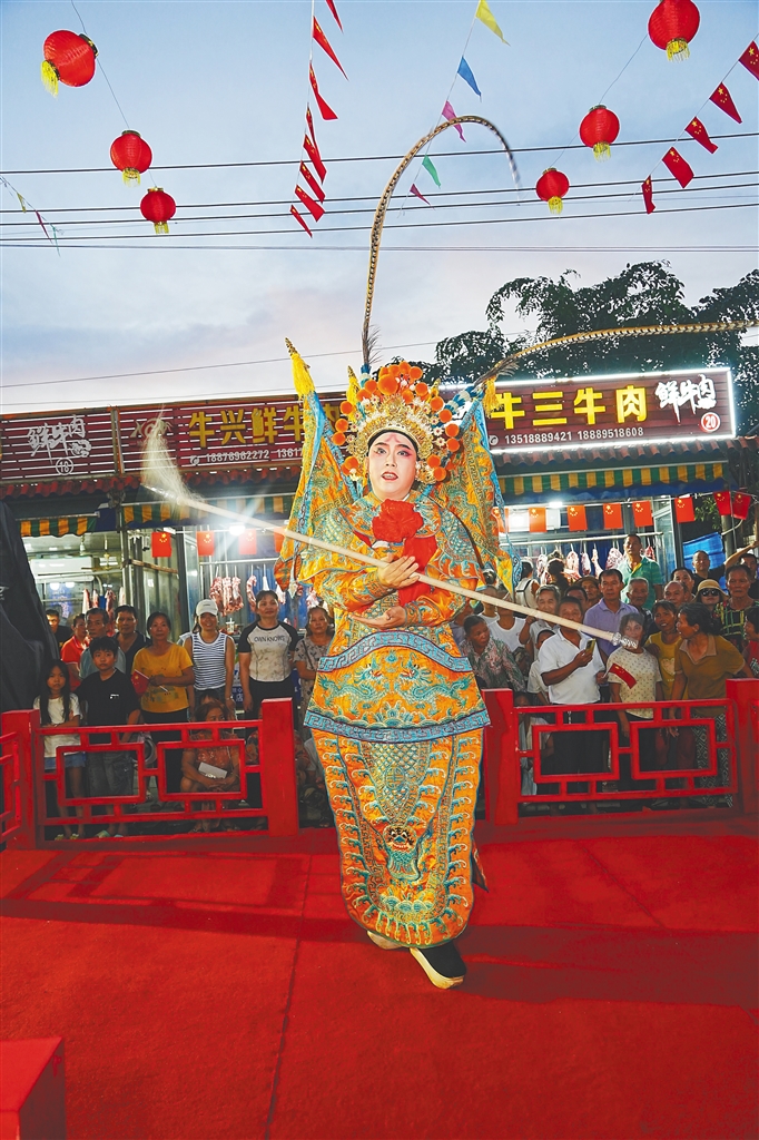 十月一日,定安糟粕醋美食文化周开幕式活动现场,精彩的琼剧演出吸引了观众的目光。活动主办方供图