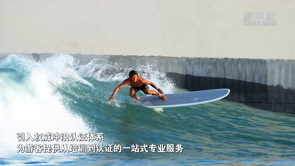 据了解,超级人工造浪池可精准模拟0.3米至2.7米共23种形态各异的海浪,既能满足零基础学员的入门需求,也为职业冲浪选手提供了全天候、高标准的训练场地。