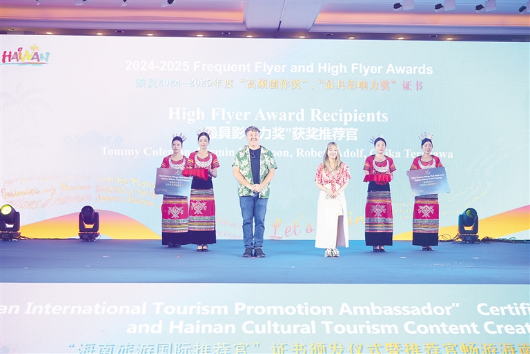 活动现场,对在海外社交平台积极宣传海南旅游的优秀国际推荐官进行表彰。海南日报全媒体记者 张茂 摄