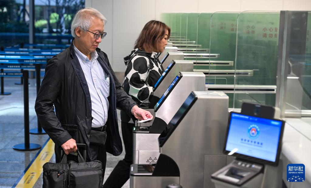 10月15日,入境旅客在海口美兰边检站使用快捷通道通关。新华社记者 杨冠宇 摄