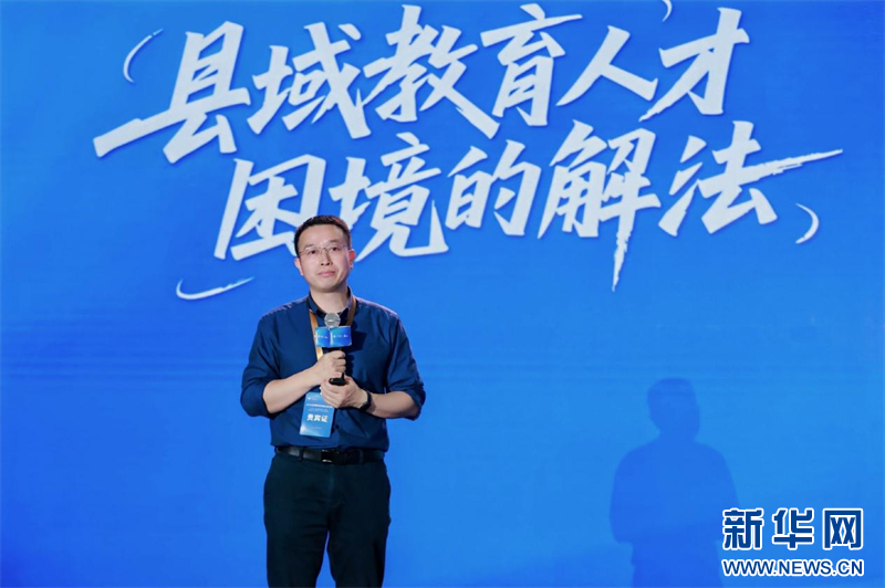 广西壮族自治区崇左市天等县教育局局长冯建华在大会现场分享观点。新华网发