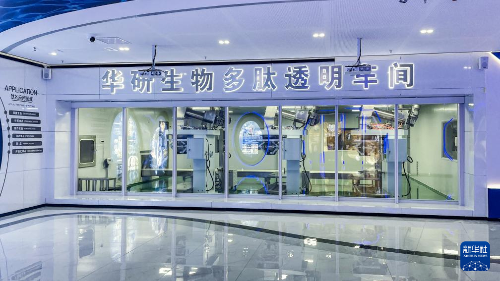 海南华研生物多肽透明车间,透过玻璃可直观看到自动化生产设备。(邢堂 摄)