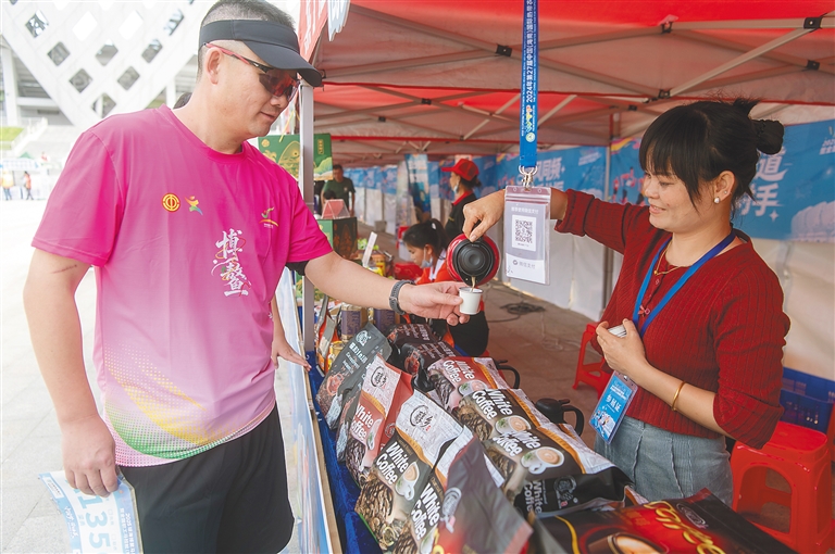 值得关注的是,嘉年华特别设置琼海旅游文创与农特美食展览展销区域,多家本土知名品牌集中亮相,构成一条飘着香气的“琼海风味长廊”,既为参赛选手提供了感受当地文化的窗口,也为市民游客搭建了消费体验平台,实现体育赛事与地方特色的有机融合。展区涵盖热带鲜果、海味干货、杂粮小吃、琼海咖啡、沉香制品等多种品类。